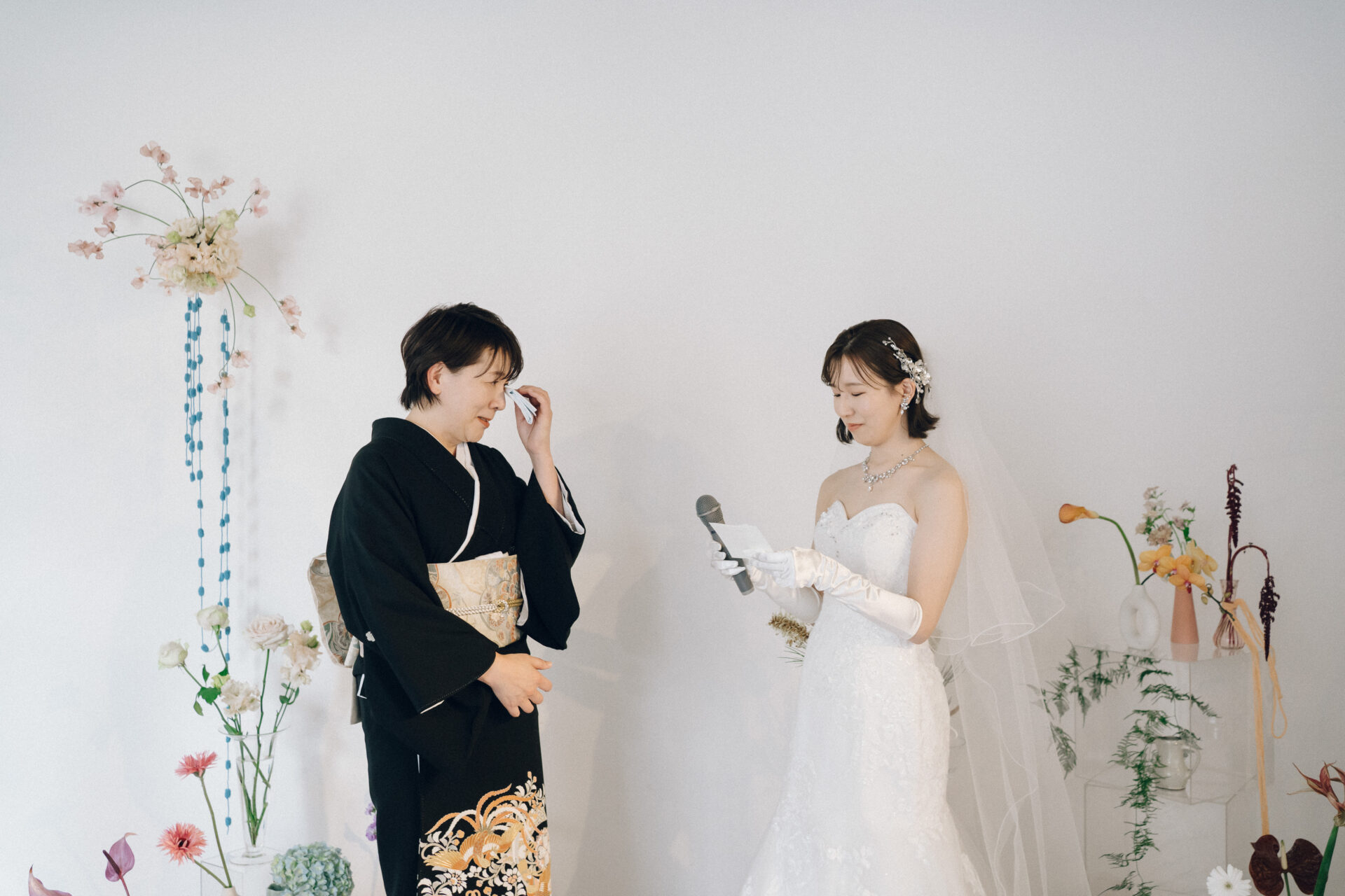 お母さまの頬には大粒の涙が光り、その姿に新婦さまも驚きを隠せません。